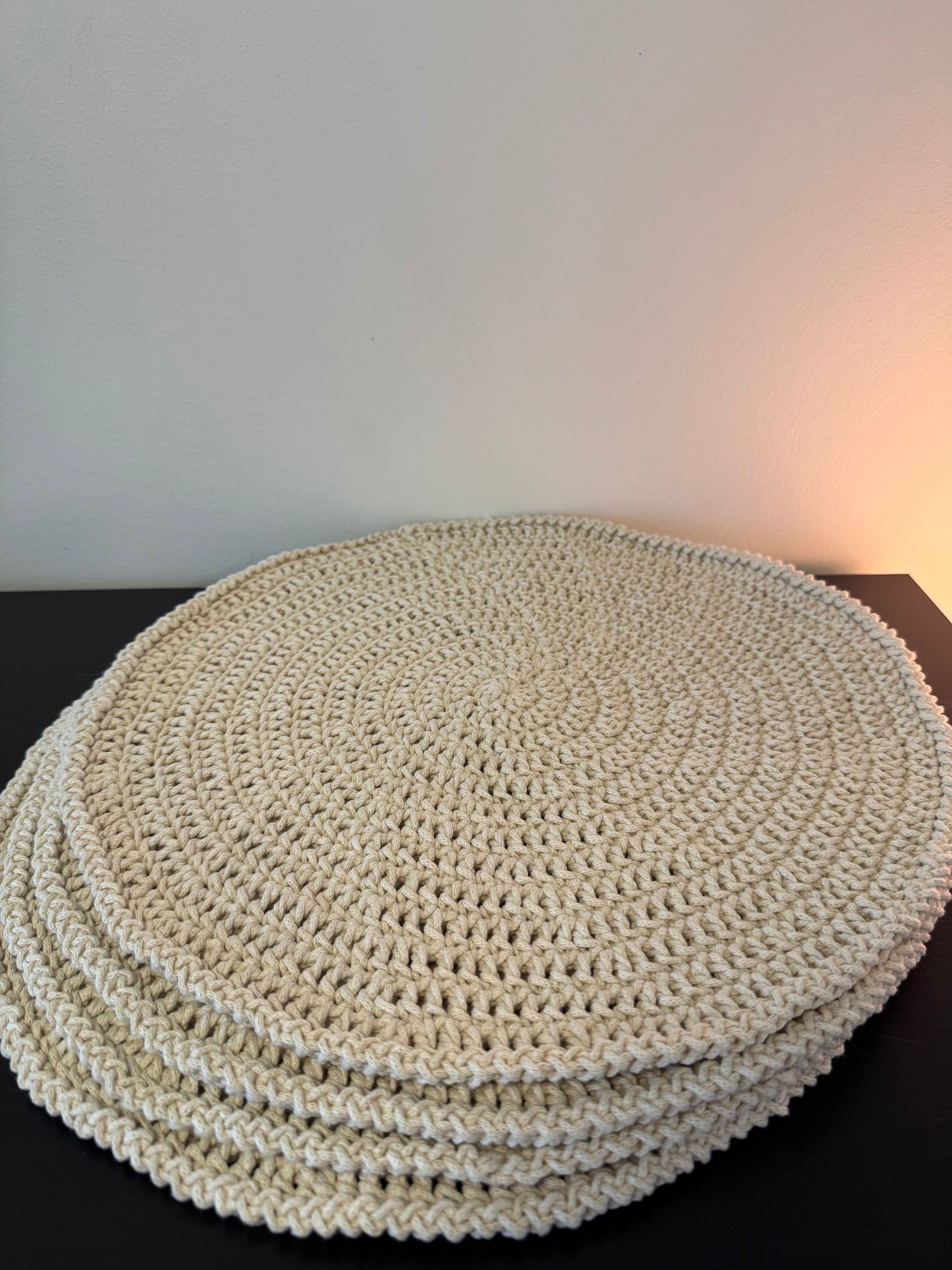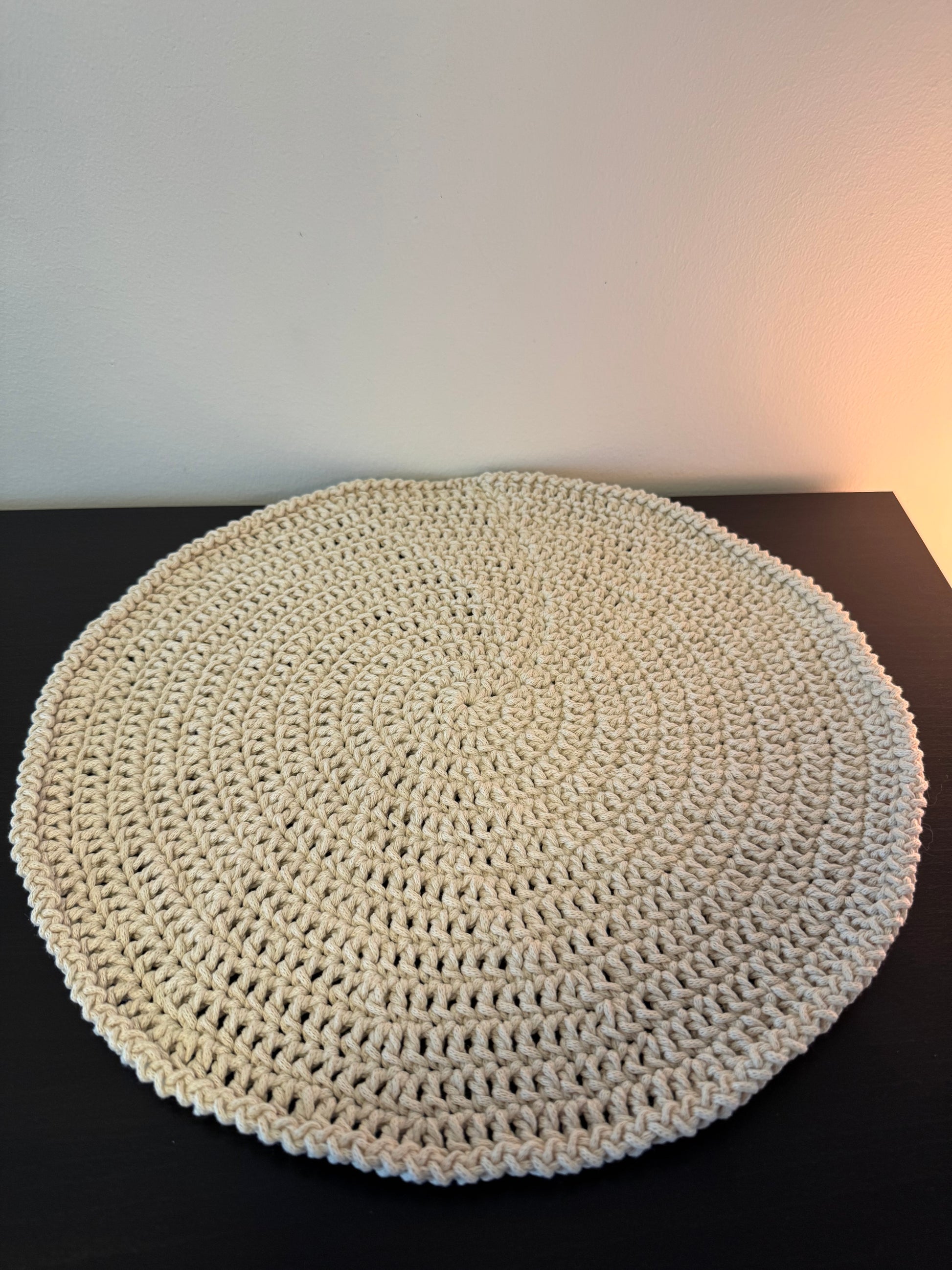 Denna runda, handvirkade bordstablett ger en rustik och naturnära känsla till din dukning. Kan även användas som dekorativt underlägg för blomkrukor eller som grytunderlägg.